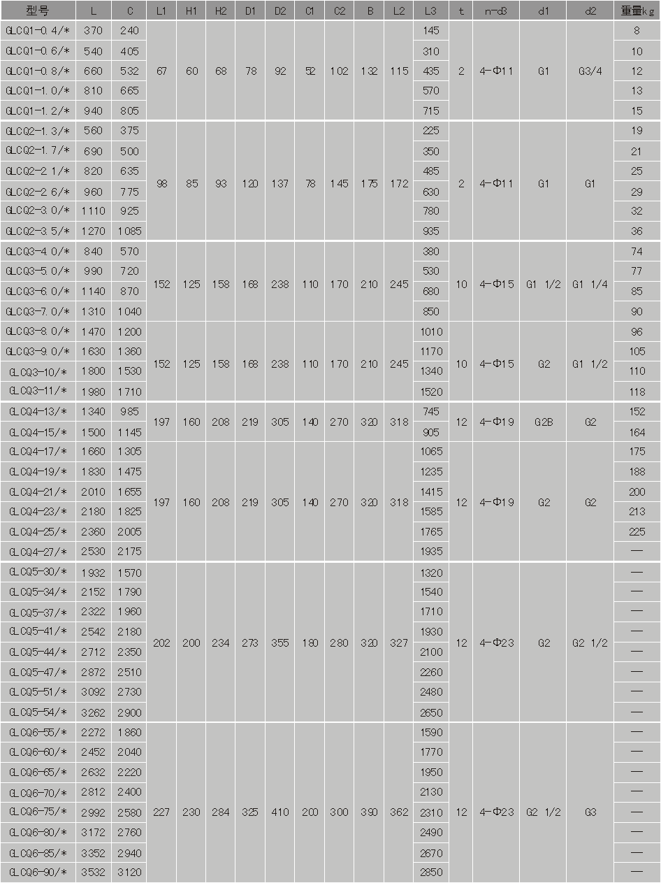 1、第一个*标注公称压力值,第二个*标注水管程数(四管程标S,双管程不标注)。下表同。
