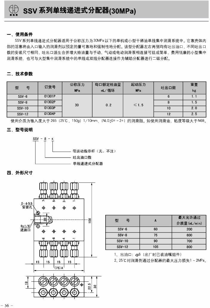 SSV系列单线递进式分配器(30MPa)