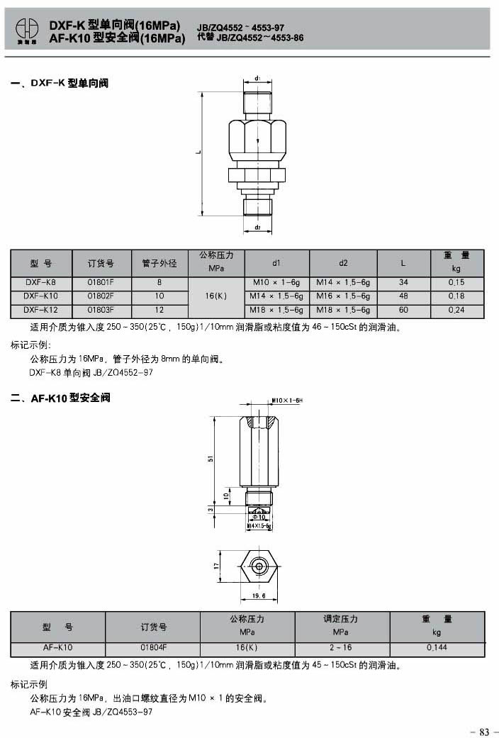 DXF-K型单间阀(16MPa)AF-K10型安全阀(16MPa)