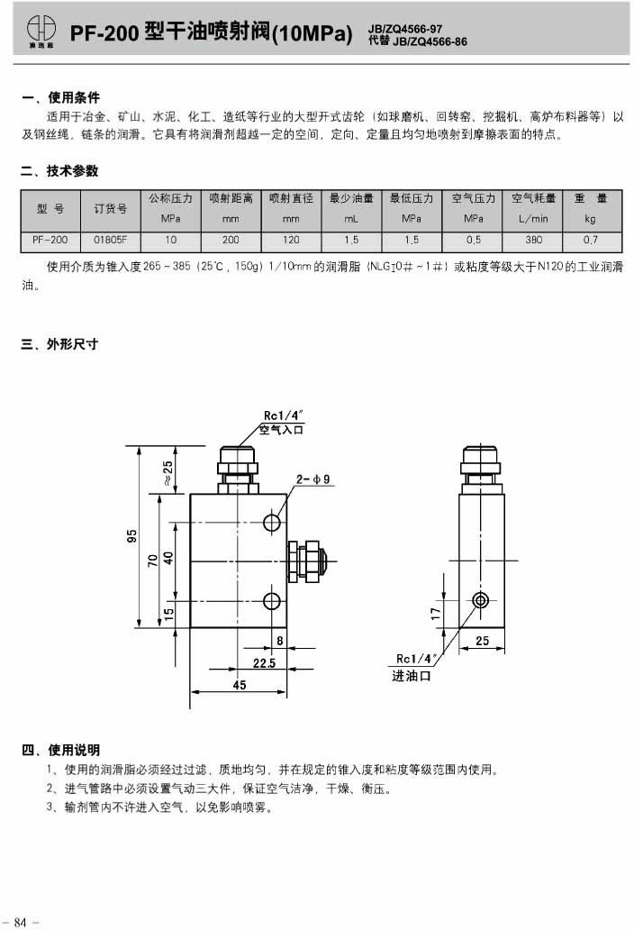 PF-200 型干油喷射阀(10MPa)