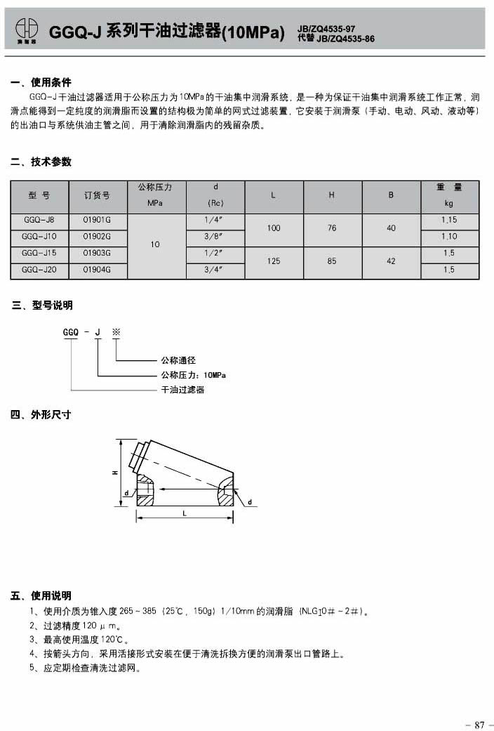 GGQ-J系列干油过滤器(10MPa)