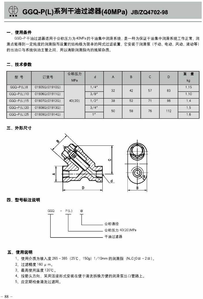 GGQ-J系列干油过滤器(10MPa)